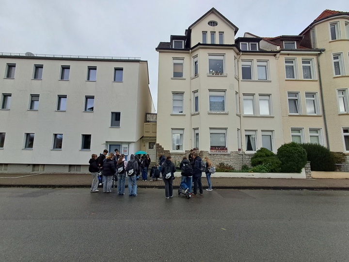 Seit diesem Schuljahr wird die Fahrt für den Doppeljahrgang 9 und 10 angeboten. Die einwöchige Abwesenheit der 10. Klassen während deren Klassenfahrt nutzten die Neuntklässler*innen und die betreuenden Lehrkräfte Regina Bangert, Christian Iburg und Dennis Janssen, um in der Innenstadt verlegte Stolpersteine, die an die Schicksale dort wohnender Juden erinnern, zu säubern und zu pflegen. Die HDR ist hierbei für die Stolpersteine der Familie Buchholz in der Sachsenstraße und denjenigen für Paula Paradies in der Krummen Straße zuständig. Alle Schüler*innen nahmen ihre Aufgabe sehr ernst und nutzten die Zeit und Gelegenheit einerseits zum Austausch ihrer Gedanken, andererseits aber auch zum stillen Gedenken an die vertriebenen Menschen.