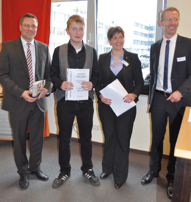 Christoph erhält seine Urkunde von Vertretern der Wirtschaftsjunioren.