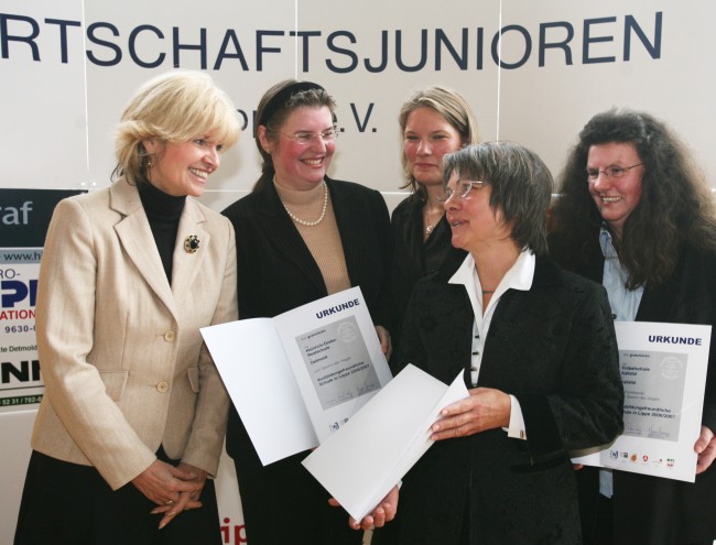Im Rahmen einer Feierstunde in den Räumen der IHK Lippe zu Detmold wurden am 12.01.07 die Sieger des Wettbewerbs "school - rating" der Wirtschaftsjunioren bekannt gegeben. Frau Ministerin Sommer übernahm persönlich die Preisverleihung.