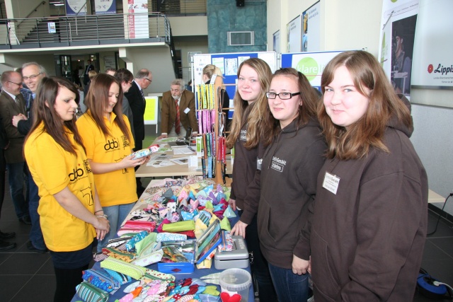 Die "Mitarbeiter" der Schülerfirma "SchönGenäht" stellten zusammen mit Ihrer Lehrerin Marina Krstevska am 8.04.2011 in Lemgo ihre selbst entworfenen und produzierten Produkte sowie das Firmenkonzept vor.