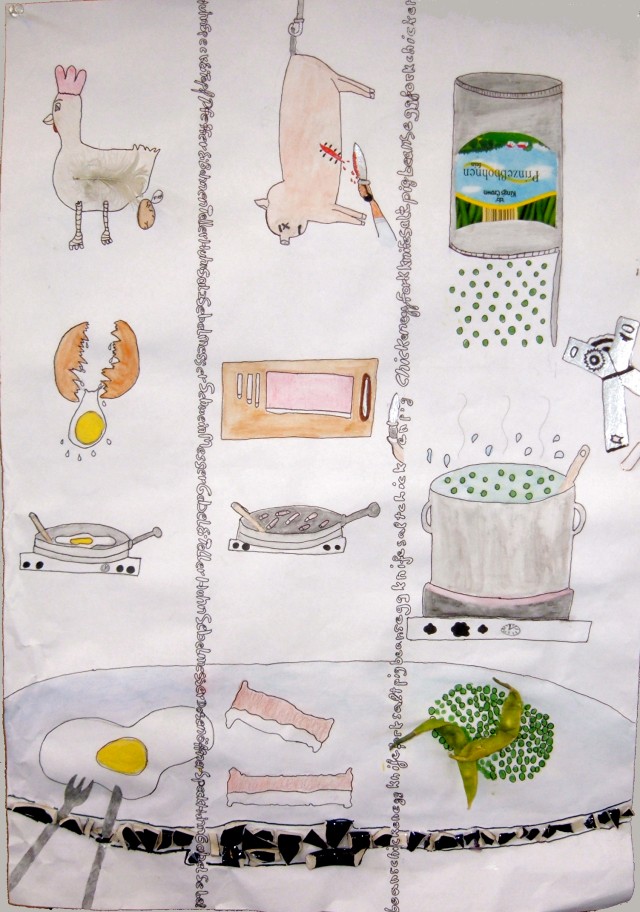 Stellt eure Lieblingsgerichte, die typisch für eure Heimat sind, jemandem vor, der eure Sprache nicht versteht und verständigt euch mittels Bildern. Erstellt eine bildhafte Anleitung, nach der man eure Gerichte nachkochen kann.