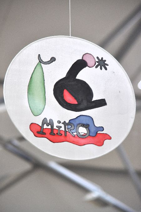 Mehrere Klassen und Kurse unserer Schule hatten im Januar die Miro-Ausstellung in der Sparkasse besucht, um sich für ihre Unterrichtsprojekte inspirieren zu lassen (siehe Bericht auf dieser Homepage). Nun stellt der Textilkurs der Klasse 9 die entstandenen Objekte in der Aula aus.