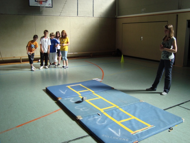 Auch in diesem Jahr fand für die jüngeren Jahrgänge (5-7) der Heinrich-Drake-Realschule der Bewegungs-check-up statt. Basis dieses Check-ups ist der erweiterte Münchner Fitnesstest nach Rusch/Irrgang, der die sportliche Leistungsfähigkeit von Schülern mit Hilfe von sieben Übungen erfasst: Ballprellen, Rumpf-Hüftbeugen, Zielwerfen, Standhochspringen, Halten im Hang, Stufensteigen und ein Sechs-Minuten-Lauf.
