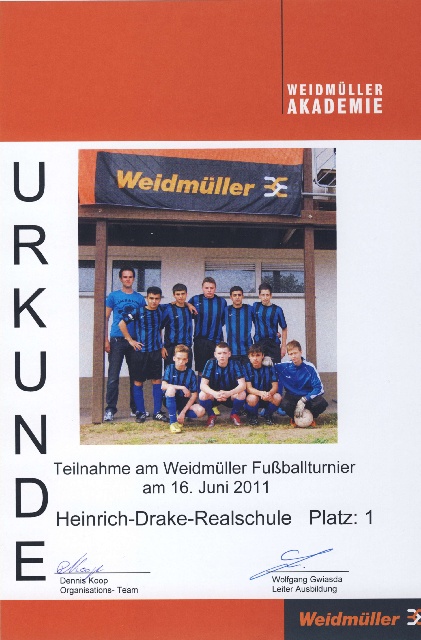 Unsere Fußballauswahl der 9. Klassen gewann am 16.6.2011 völlig verdient das von der Weidmüller Akademie organisierte Fußballturnier.