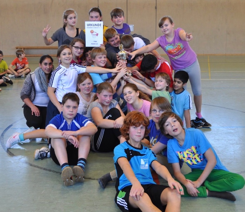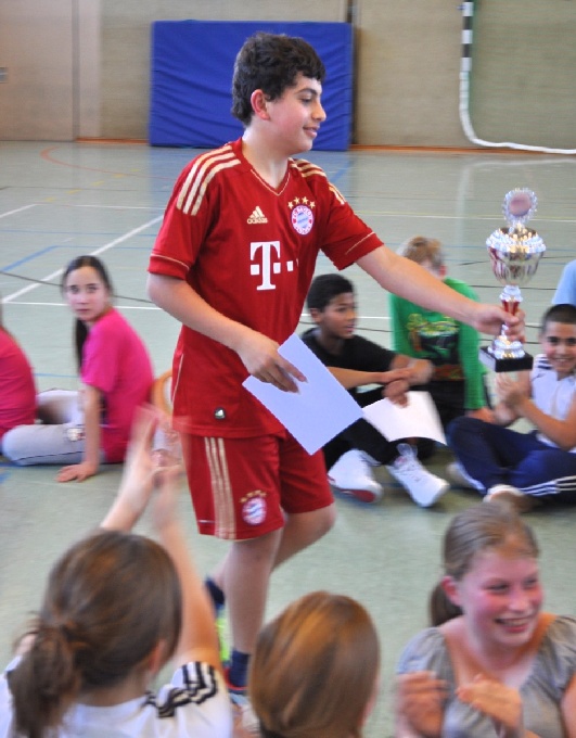 Bei den Sportklassen konnte sich zunächst die Klasse 5c gegen die 6c durchsetzen, im Finale gegen die 6d zogen die jüngeren Sportlerinnen und Sportler jedoch trotz eines Bonus von 20 Punkten den kürzeren. 30 zu 26 lautete das Endergebnis des Finales der Sportklassen - und die Klasse 6d feierte den Gewinn des Pokals.
