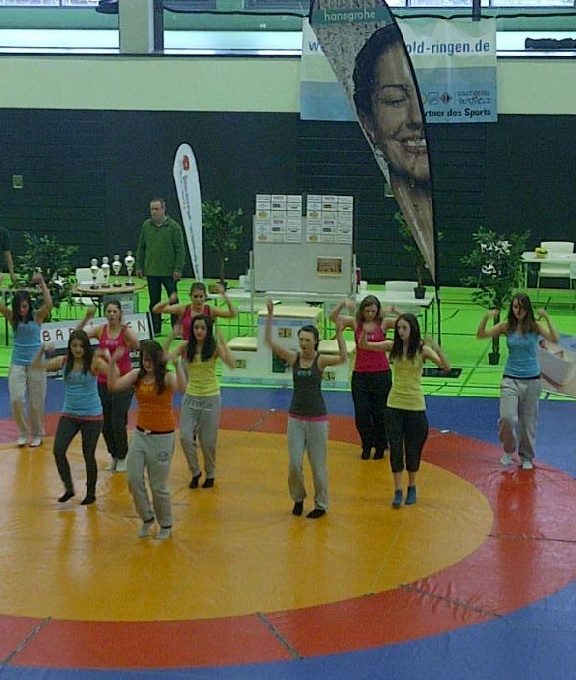 Bei einem Auftritt während der Landesmeisterschaften im Ringen konnten die Schülerinnen ihr Können unter Beweis stellen und ernteten viel Applaus.