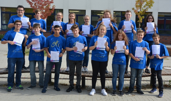 Noch im alten Schuljahr hatten sich 19 neue Sporthelfer eine Woche lang einer intensiven Ausbildung durch die Sportlehrerinnen Margit Gerke-Reineke und Evelin Kriete gestellt. Hilfestellungen, Regelkunde, erste Hilfe und das Ausprobieren, aber auch die Durchführung verschiedenster Spiele und Sportarten standen auf dem Programm. Nun erhielten die Sportassistenten ihre Urkunden und T-Shirts.