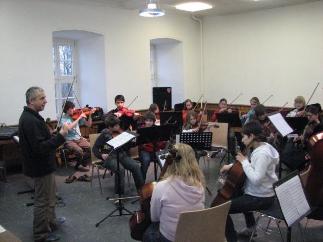 Einmal im Jahr fährt das Streicher-Ensemble der Heinrich-Drake-Realschule auf die "Burg Sternberg" in der Nähe von Lemgo zum intensiven Üben.