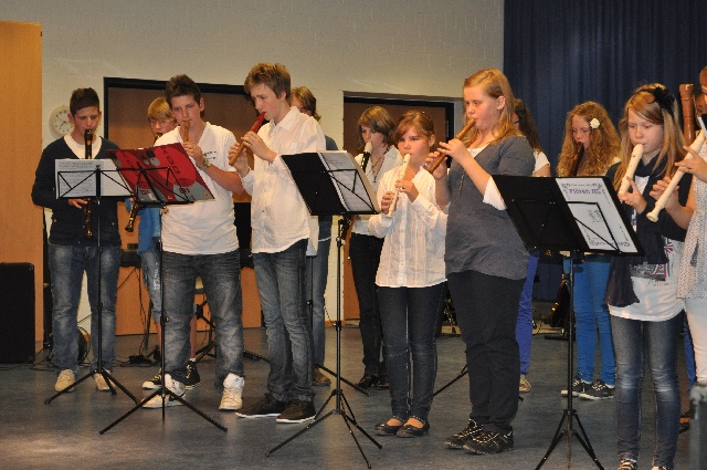Über mangelnden Zulauf brauchten sich die musizierenden Schülerinnen und Schüler jedoch nicht zu beklagen. Trotz des Fußballspiels der EM-Vorrunde war die Aula gut gefüllt, und das Publikum erwartete die Darbietungen mit Spannung.