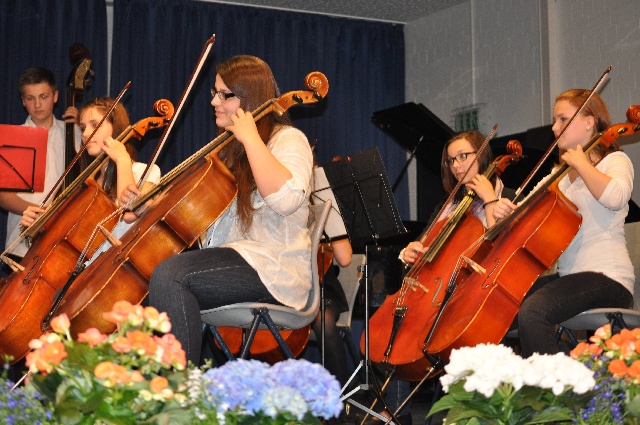 Die Streicherklassen 5 und 6 zeigten ihr - schon beachtliches - Können mit einigen kurzen, genau auf ihre Fähigkeiten zugeschnittenen Stücken und ernteten dafür großen Applaus.