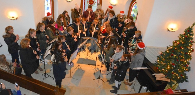 Die 34 Schülerinnen und Schüler hatten eine gute Mischung aus traditionellen und modernen Melodien einstudiert. So bot sich den verschiedenen Flötenstimmen auch die Möglichkeit sich auszuzeichnen, denn manche Stücke waren ausschließlich für bestimmte Flöten vorgesehen. Ein Höhepunkt des Konzertes war die stimmungsvolle "Weihnachtspastorale" von Vivaldi, die von den Schülerinnen und Schülern interpretiert wurde, die eine besondere Herausforderung suchten.