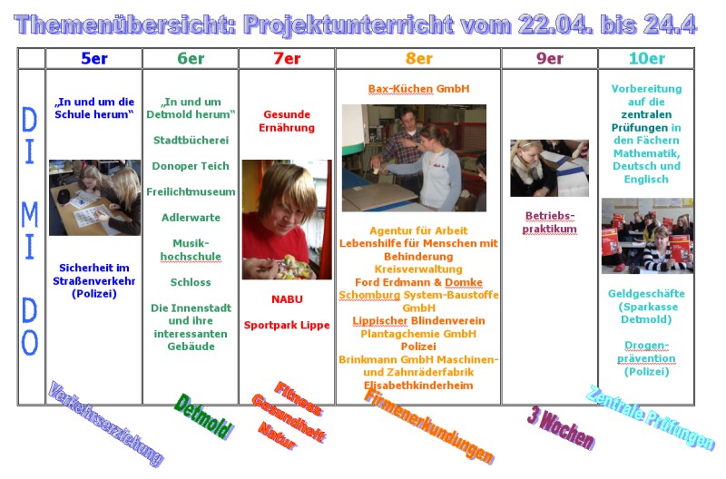 In der folgenden Tabelle sehen Sie die genaue Aufteilung der diesjährigen Projektwoche!