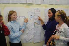 In Gruppenarbeit werden Gesprächsregeln erarbeitet, vorgestellt und als Wandplakate fixiert. |