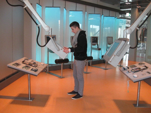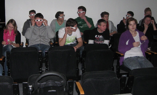 Gegen Ende unseres Museumsbesuchs gab es im 3D-Kino noch eine schwindelerregende Autofahrt aus verschiedenen Blickwinkeln. Es wurden Fahrten vorgeführt, aber dann setzten sich einige Schüler auch selbst ans Steuer.