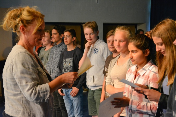 Besonders beeindruckend war jedoch die Ehrung der besten Schülerinnen und Schüler. Schulleiterin Eva Brinkmeier gab pro Jahrgangsstufe das jeweils beste Zeugnis bekannt. Diese Leistungen wurden mit lautstarkem Jubel aus dem Publikum entsprechend gewürdigt.