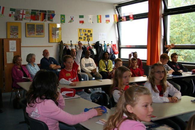 Die Kollegen fanden es sehr interessant, dass an dieser Schule jeder Schüler eine Grundausbildung in den Bereichen Computer und Musik bekommt und dass die Schüler bis zu vier Stunden Sport in der Woche haben. Zum Schluss lud die Englischlehrerin Gesine Möller die acht Kollegen aus Atlanta nach einer kleinen Kaffee-Pause zu einer Unterrichtsstunde in dem Fach Englisch im sechsten Jahrgang ein. Und am meisten freuten sich die deutschen Schüler darüber, dass die Lehrer deren Muttersprache englisch ist, begeistert waren, wie sauber und deutlich die Aussprache der jungen Schüler im Fach Englisch ist.
