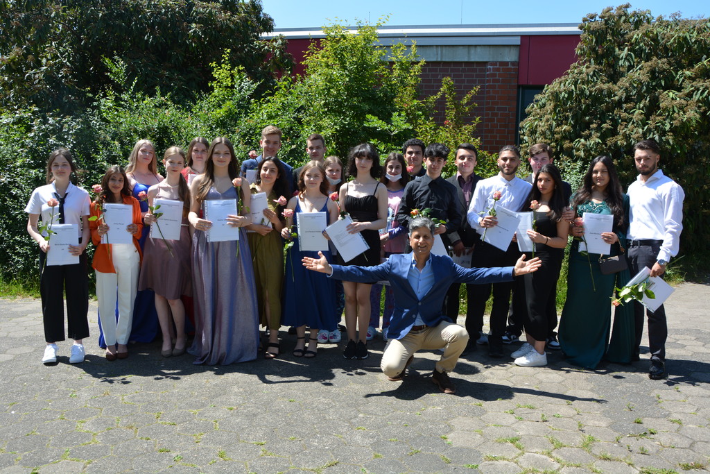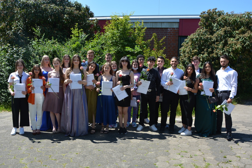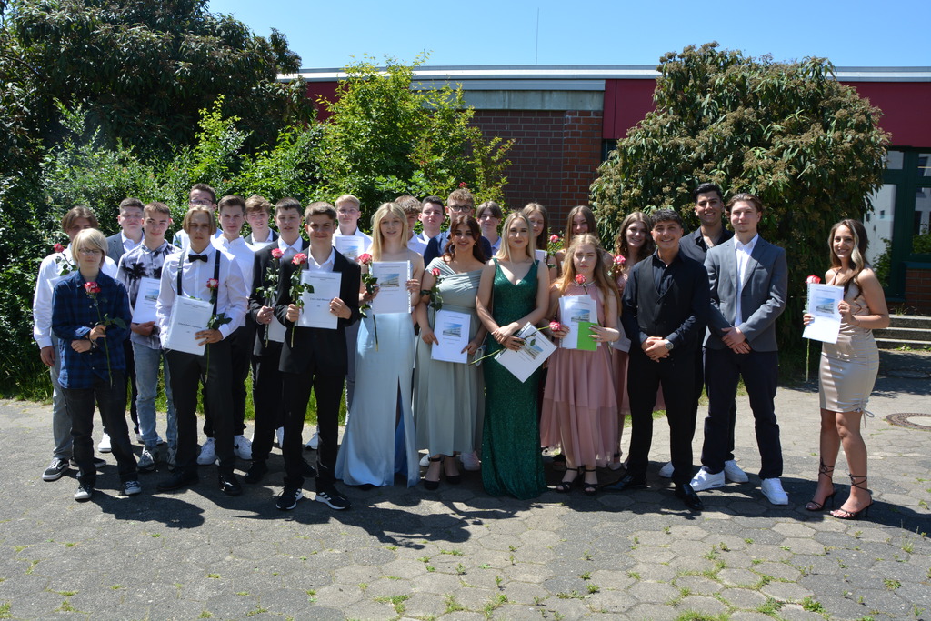 Zum Abschluss ehrte die Vorsitzende des Fördervereins Regina Bangert folgende neun Schülerinnen und Schüler für besondere schulische Leistungen und besonderes soziales Engagement: Maurice Effner, Jan Luis Schauder, Medine Sit (Klasse 10a), Louis Dikong, Alicia Schwipps (Klasse 10b), Diana Pries, Paula Rosemeier, (Klasse 10c), Lukas Hengstler, Pia Schulze (Klasse 10d). Anschließend lud der Förderverein bei strahlendem Wetter zu einem Sektempfang auf dem Schulhof ein.